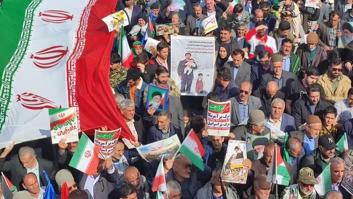شرکتکنندگان با در دست داشتن پرچمهای سهرنگ ایران اسلامی و پلاکاردهایی با مضامین انقلابی، فریاد مرگ بر آمریکا و مرگ بر اسرائیل را طنینانداز کردند و بار دیگر پشتیبانی بیچون و چرای خود را از آرمانهای استکبارستیزانهی نظام جمهوری اسلامی اعلام کردند.